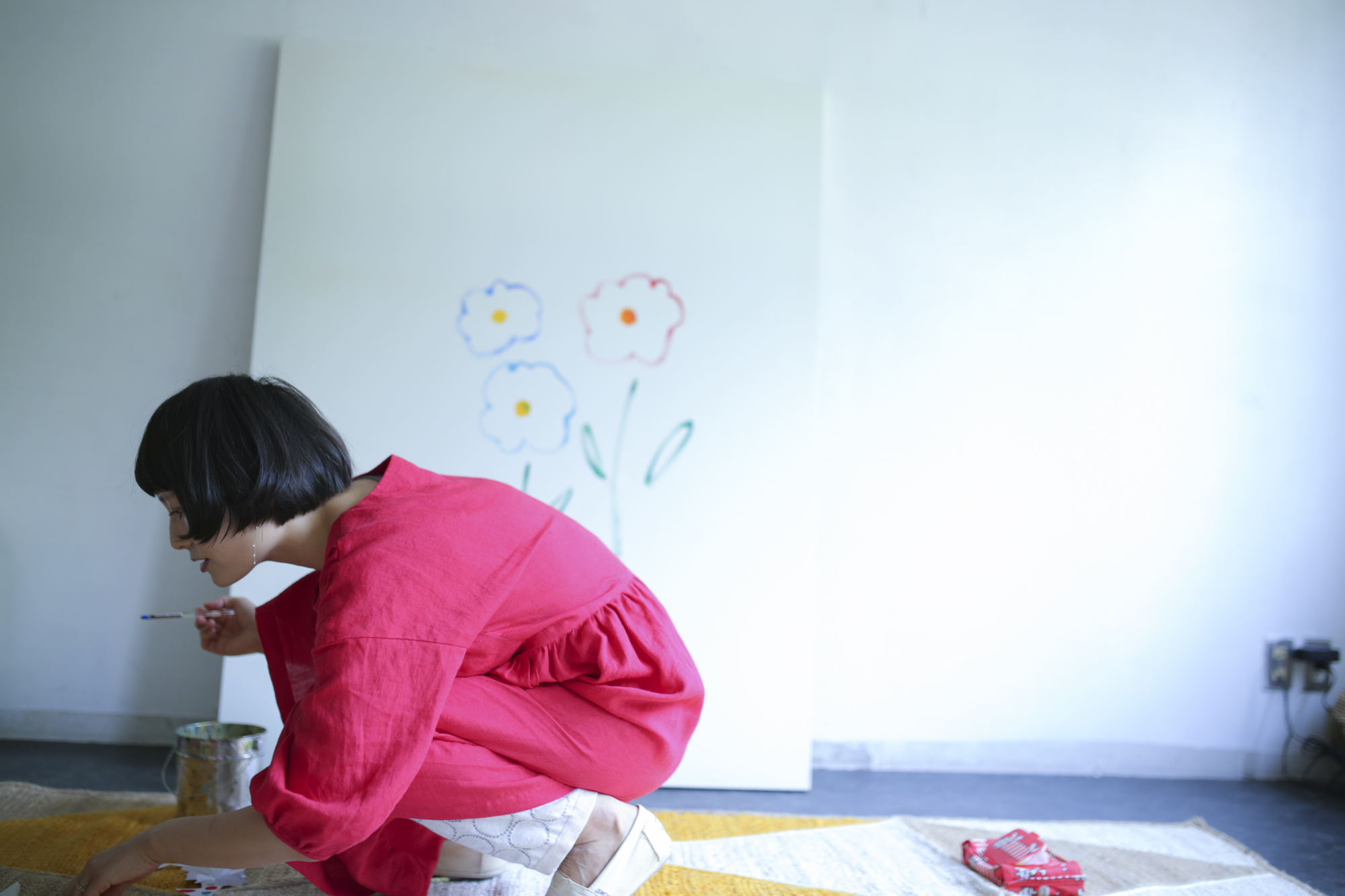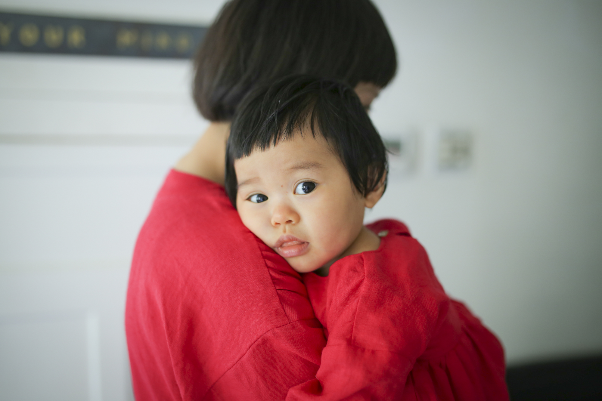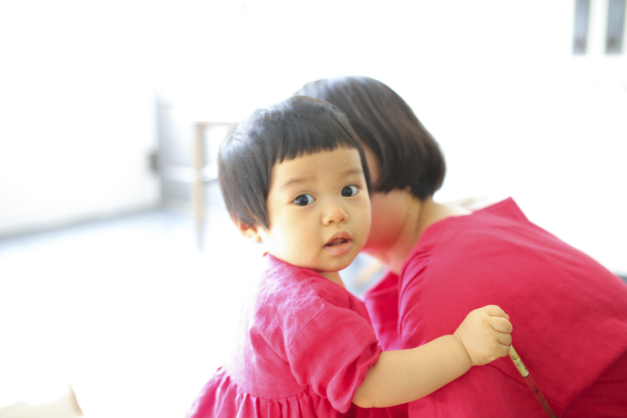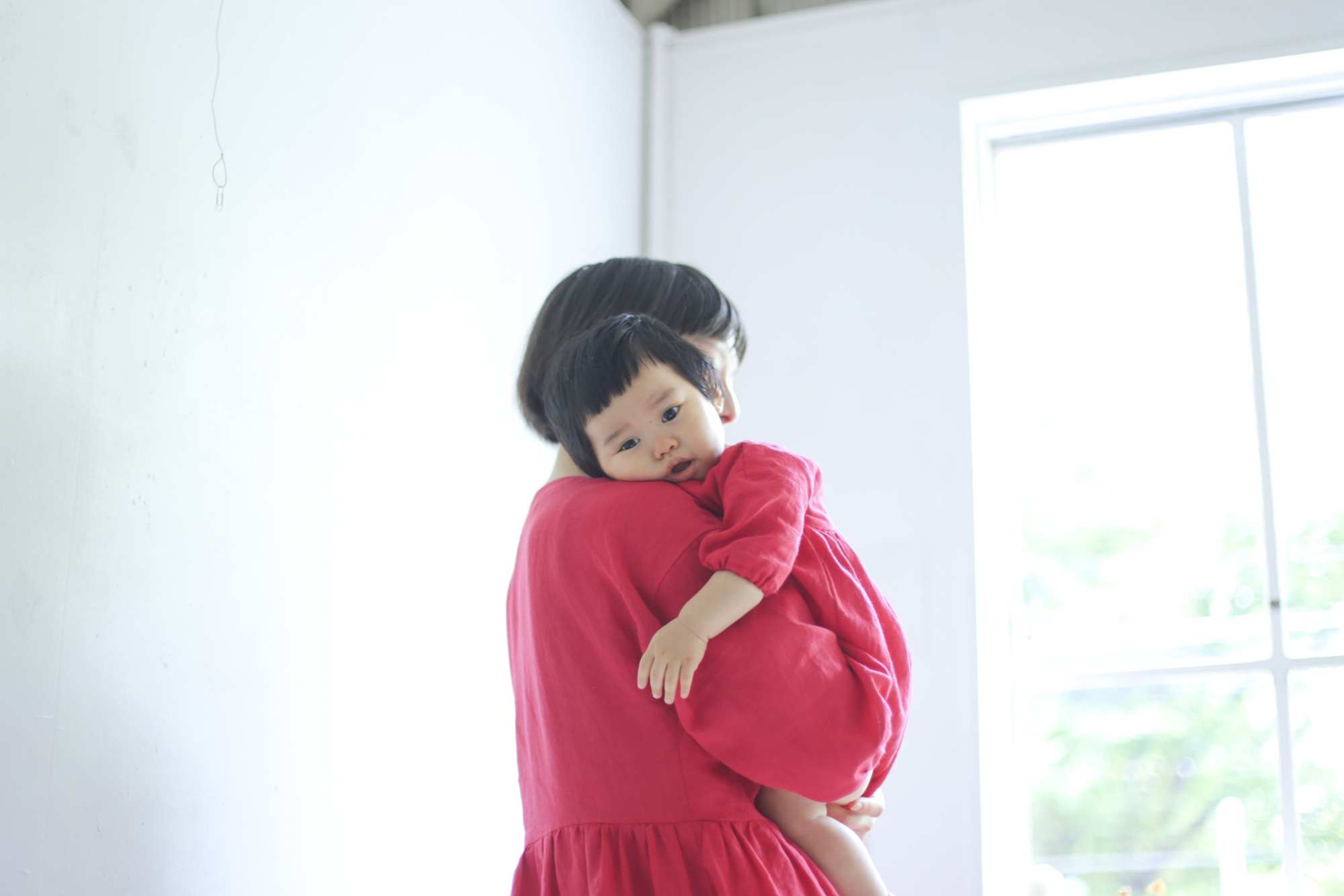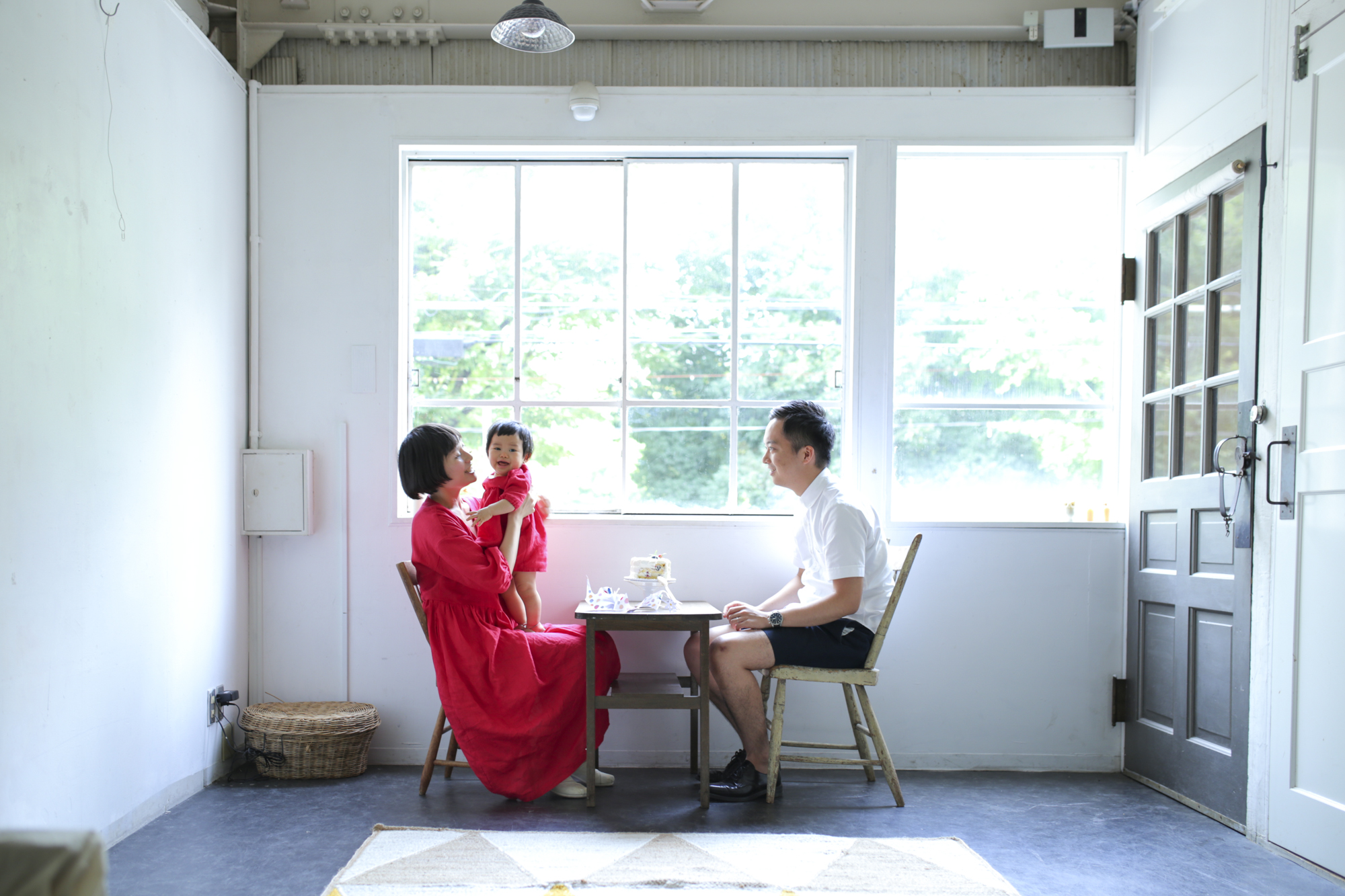お揃いの赤いワンピースはMAISONETTEinc.で制作。