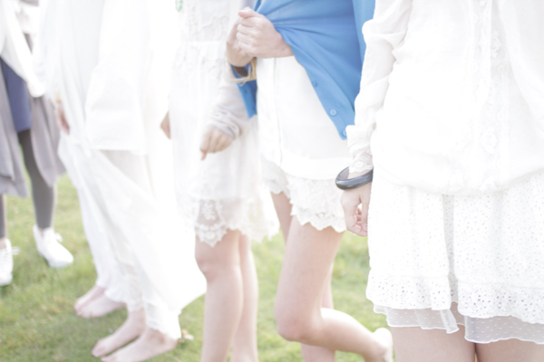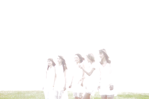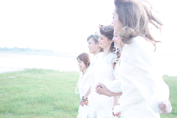 全身白い衣装でスタイリングされた5人の女性。